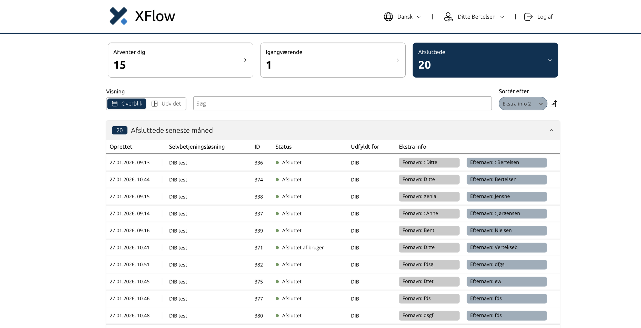 På brugerdelen under ‘Overblik’ og ‘Søg’ er det nu muligt at sortere på kolonnerne under ‘Ekstra info’ ved at bruge sorteringsfunktionaliteten ‘Sorter efter’.