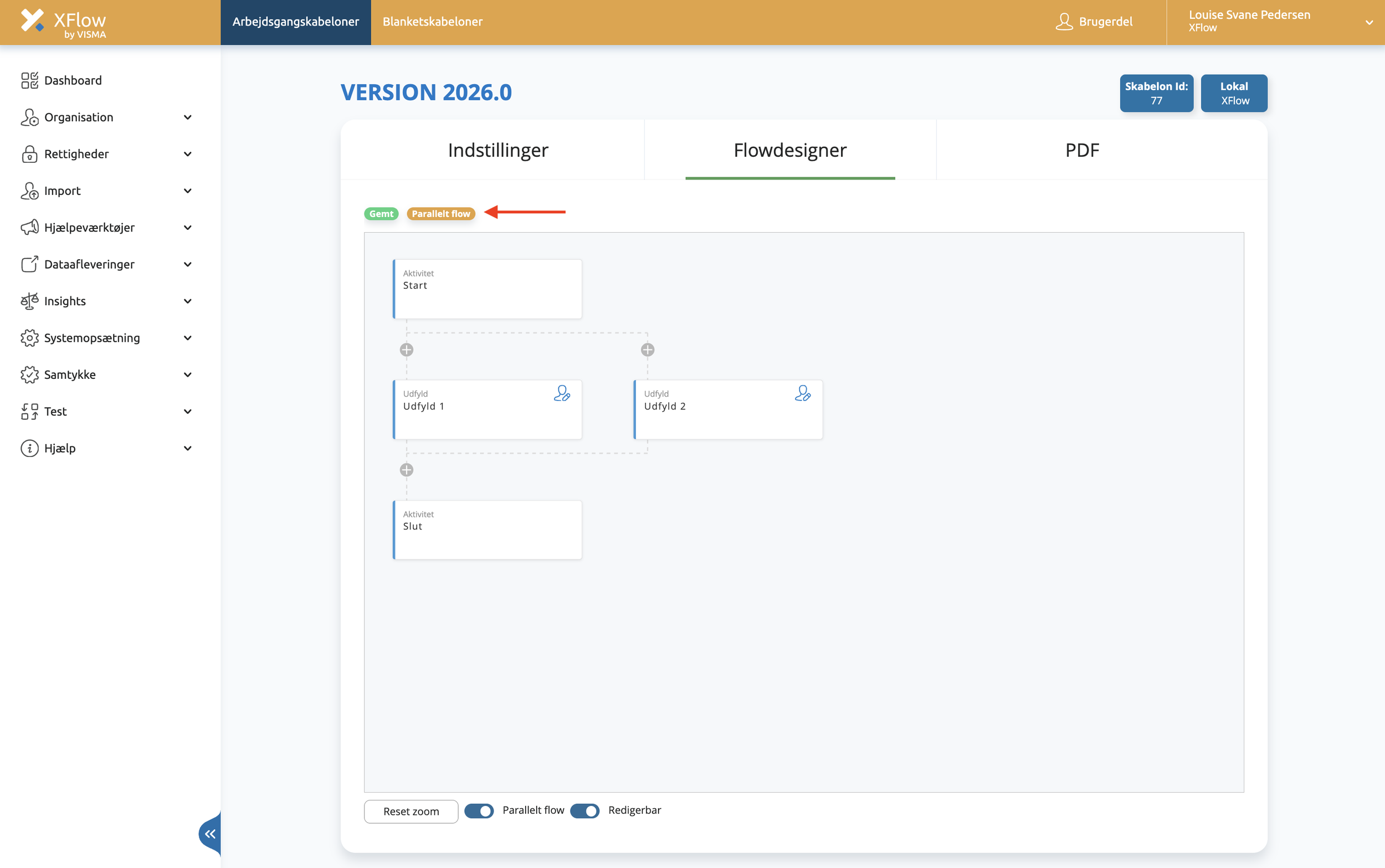 I toppen af flowdesigneren vises nu en tydelig markering, når et flow rent faktisk er parallelt – uafhængigt af om knappen lige nu er slået til eller ej.