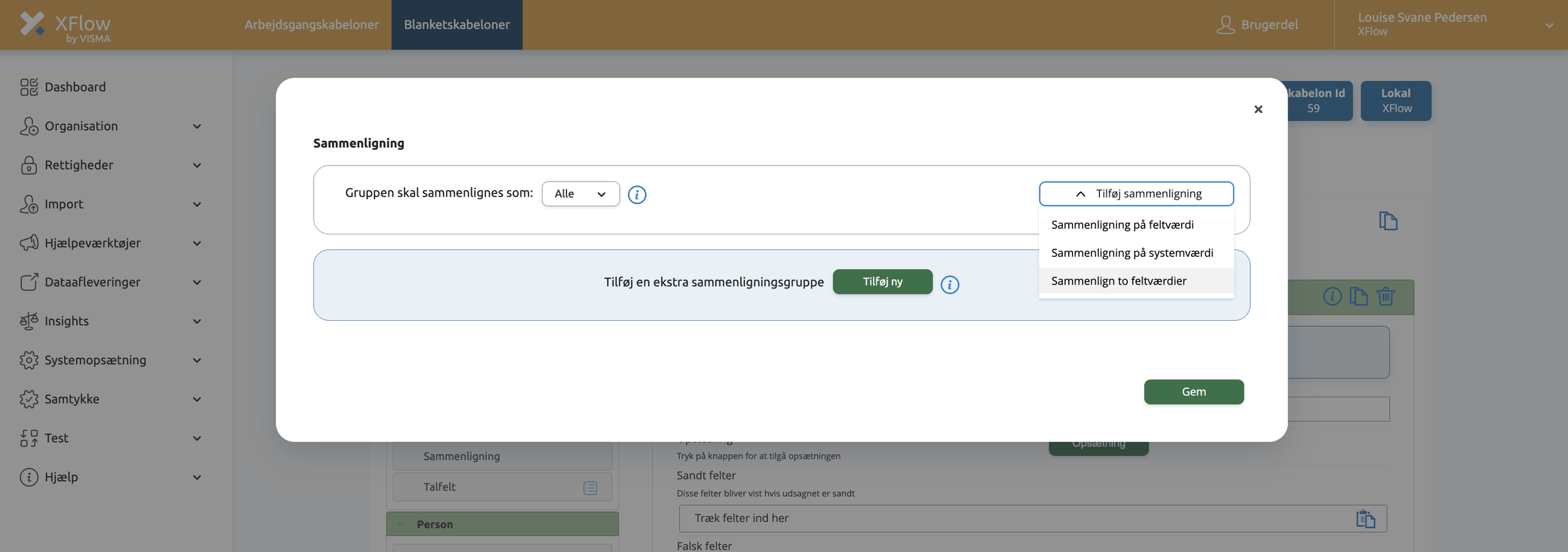 Sammenlign værdier fra to felter med hinanden i sammenligningsfeltet