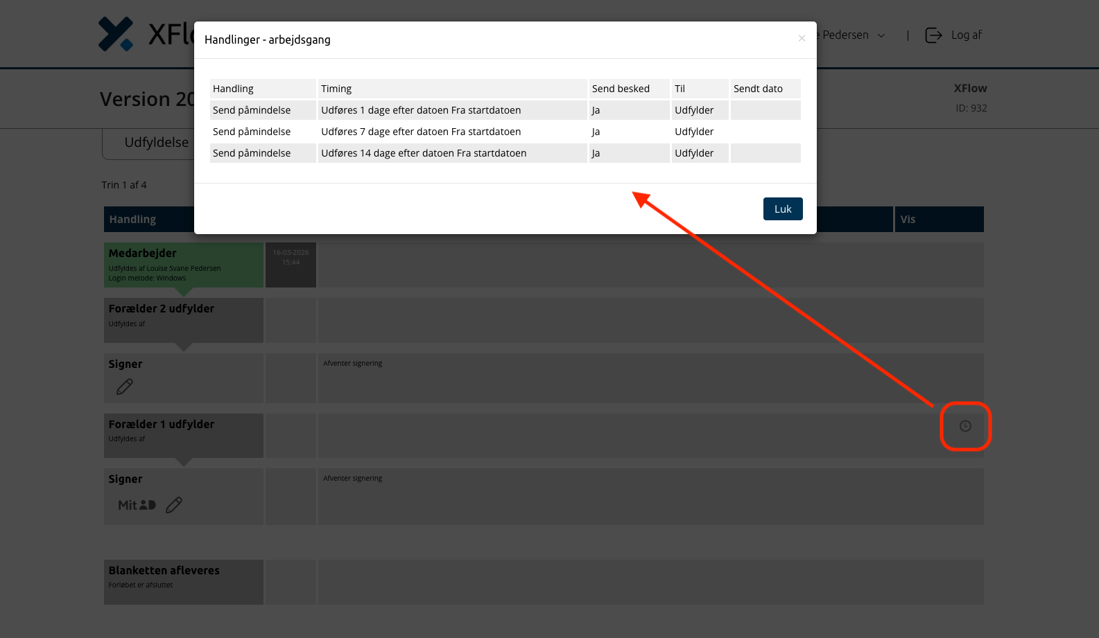 Udførelsesdatoer og modtagere beregnes ud fra den oprettede arbejdsgang og den oprindelige opsætning, så ændringer i skabelonen efterfølgende ikke slår skævt igennem.
