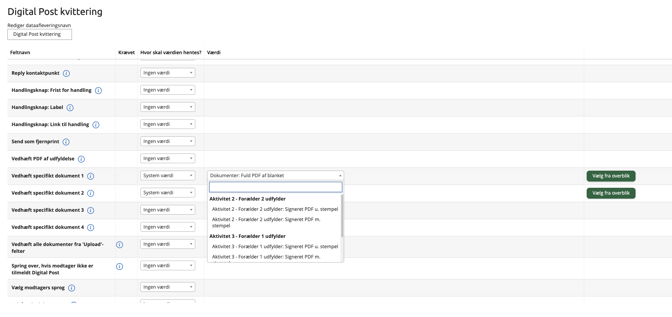 For at gøre det mere gennemsigtigt og give dig mere kontrol over, hvilke dokumenter der sendes med i dataafleveringer, har vi tilføjet to nye systemværdier, som kan bruges i mappingen “Send specifikt dokument”: