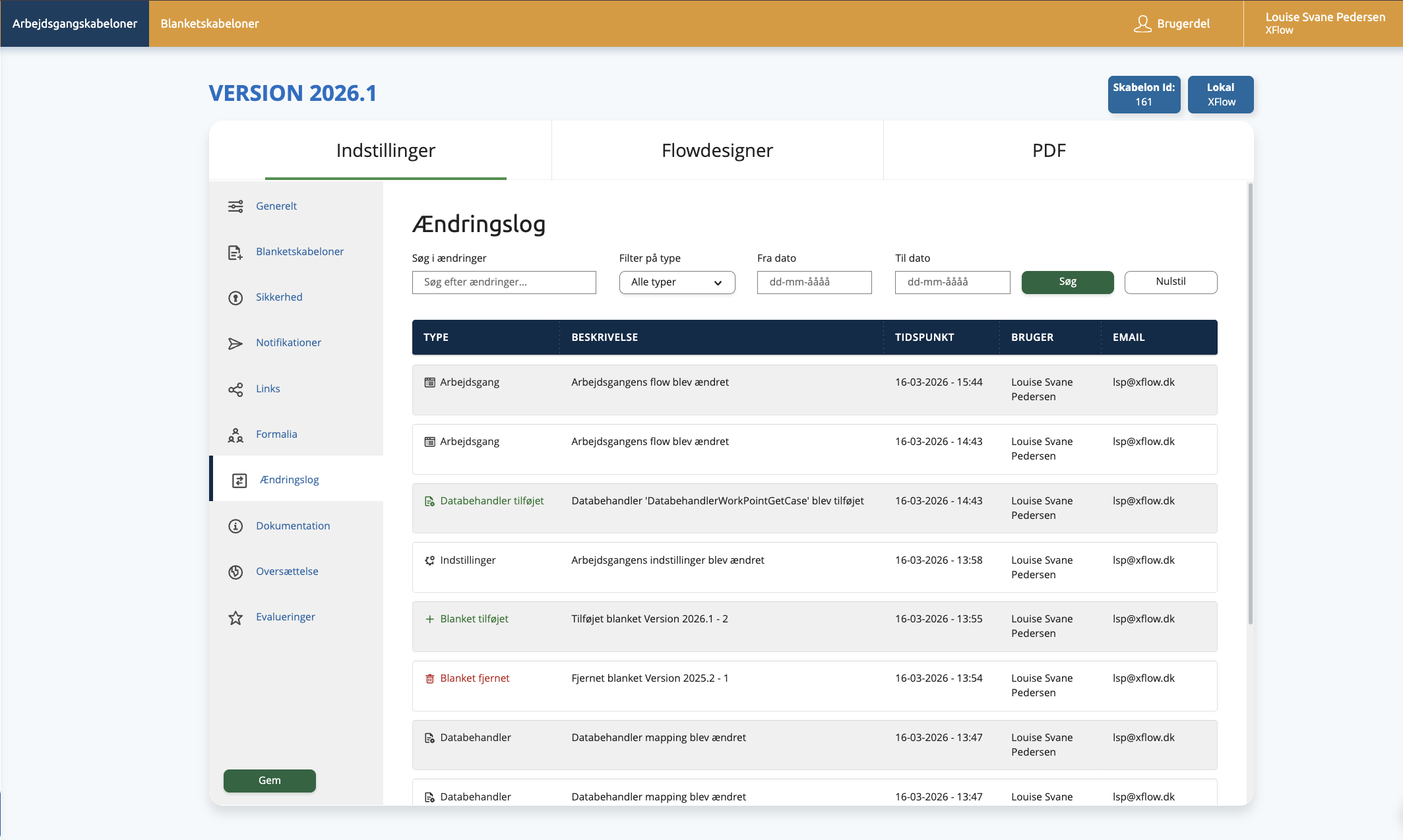 Ændringsloggen under arbejdsgangsskabeloner og blanketskabeloner har fået et nyt og mere moderne design. Samtidig er det nu også muligt at søge i ændringsloggen via et søgefelt og en række søgefiltre.