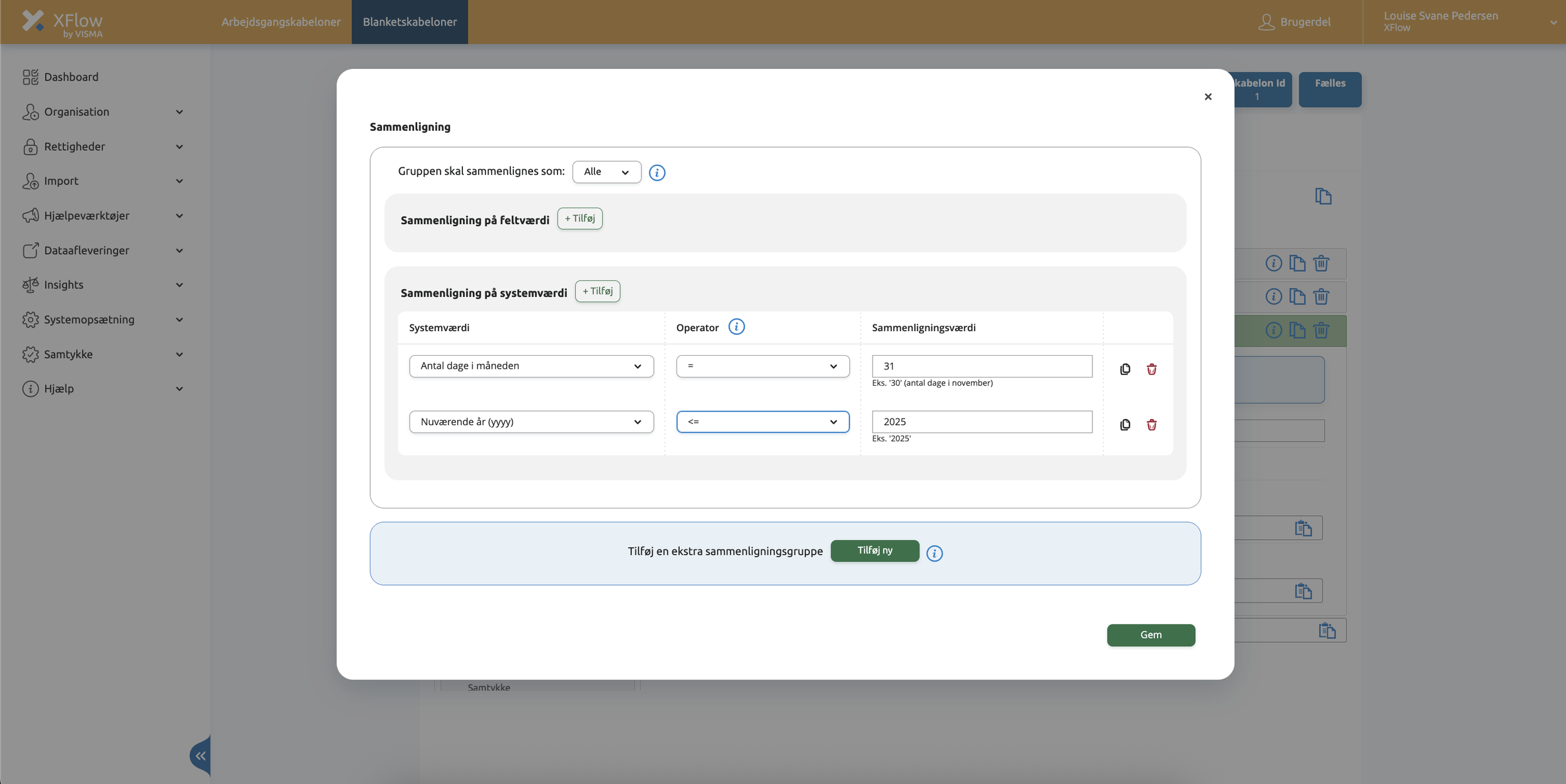 Sammenligningsfeltet er derfor udvidet med en ny sektion: “Sammenligning på systemværdi”, hvor du kan tilføje en eller flere betingelser baseret på nedenstående systemværdier: