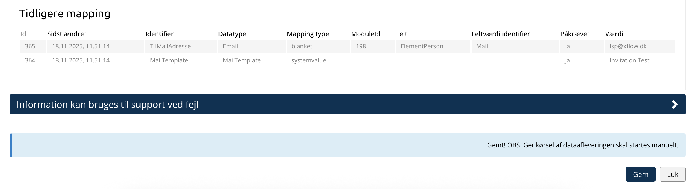 Det er nu muligt at rette værdier i mappings direkte på en igangværende dataaflevering – så du selv kan udbedre fejl og få afleveringen videre i flowet uden at oprette alt på ny.