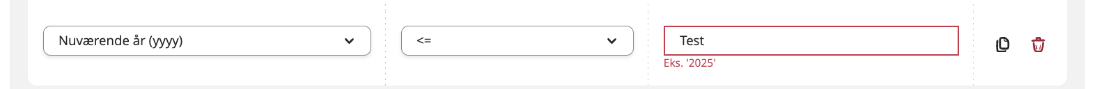 Det giver dig mulighed for at opsætte mere fleksibel logik – f.eks. “Vis feltet, hvis nuværende år <= 2025”.